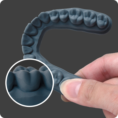 With up to 190°C heat resistance capability and 50μm resolutions, Phrozen Dental Resin is your best choice to print highly detailed thermoformed models for creating clear aligners and orthodontic appliances. Formulated with a pleasing matte gray finish, the low reflective surfaces help orthodontic professionals to examine all the fine details and plan patient treatments with comfort.