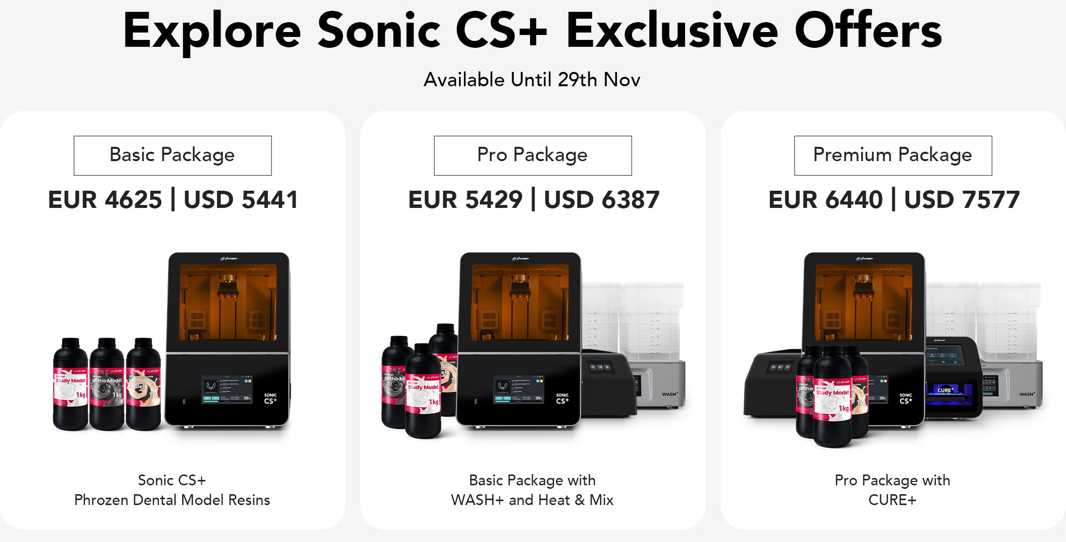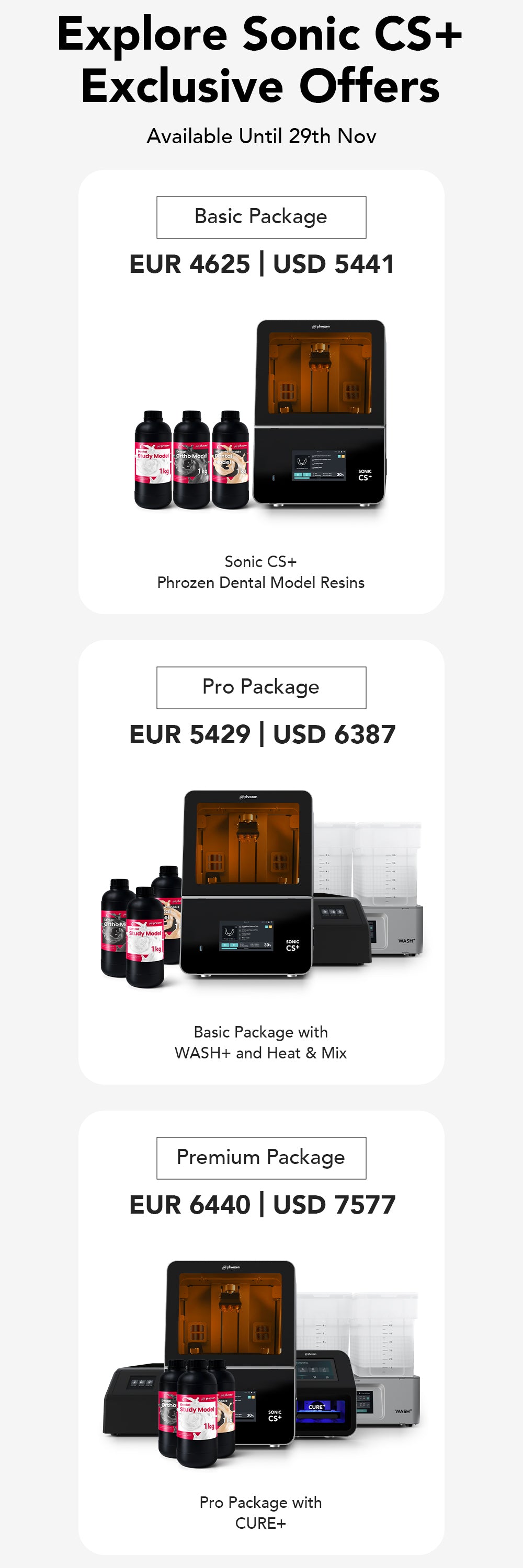 Sonic CS+ features a 385 nm LCD screen designed for superior accuracy and reliability. With enhanced per-layer light penetration, it delivers precise cross-arch fits for consistent, high-quality results — the perfect choice for your first journey into digital dentistry.