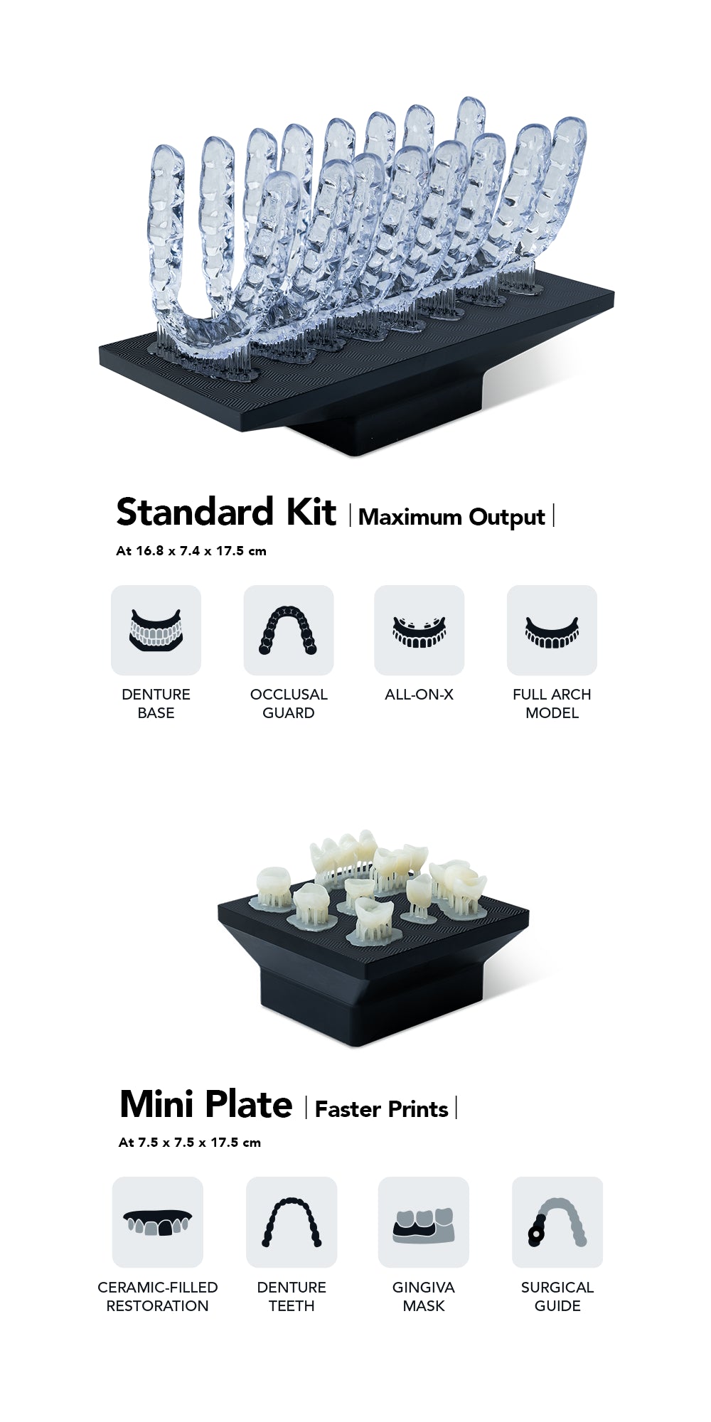 Designed for versatility and efficiency, choose the Mini Kit for faster prints and reduced cleaning time, and switch to the Standard Kit for maximum output.